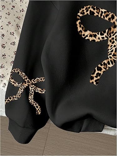 Feature: Sweatshirts for girls, animal print, bow graphic, long sleeve, hooded neck, drop shoulder, loose fit