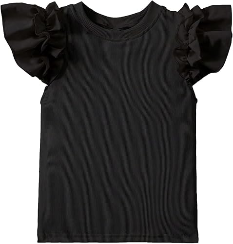Design: Solid color, ruffle cap sleeve, frill trim, round neck, contrast lace