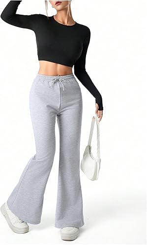 Features: Drawstring waist sweatpants, elastic waist, solid color, flare sweatpants, y2k sweatpants