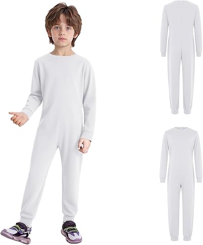 Oyolan Adaptive Clothing for Kids Boys Girls Long Sleeve Long Leg Jumpsuit Zip Back Overall Romper with Special Needs White 8 Years