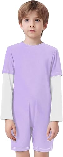 Oyolan Kids Girls Boys Special Needs Adaptive Clothing Anti-Strip Romper Color Block Long Sleeve Zip Back Jumpsuit Lavender White 16 Years