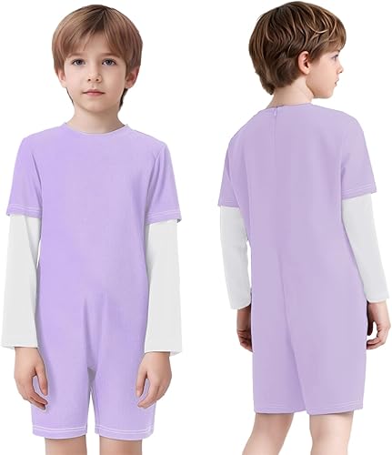 Oyolan Kids Girls Boys Special Needs Adaptive Clothing Anti-Strip Romper Color Block Long Sleeve Zip Back Jumpsuit Lavender White 8 Years