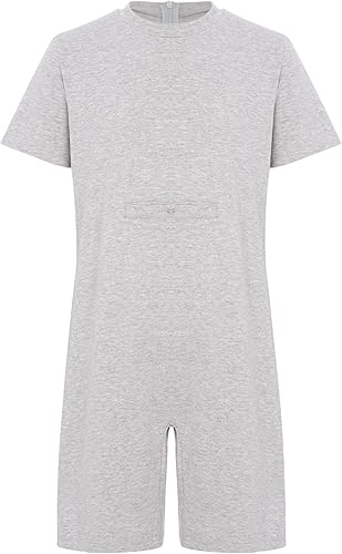 Oyolan Kids Girls Boys Special Needs Adaptive Clothing Short Sleeve Zip Back Jumpsuit Anti-Strip Romper with Tube Access Grey 16 Years