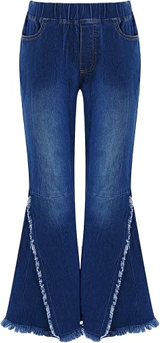 Design with stylish denim ripped style, wide leg, crisscross bell-bottom tassel hem, casual and soft fabric, very daily and fashion