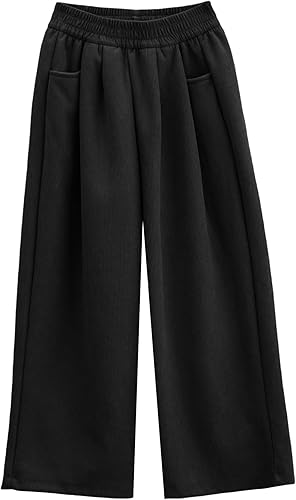 Girl's wide-leg pants with pleats at the front look simple and stylish. Two side pockets for carrying essentials
