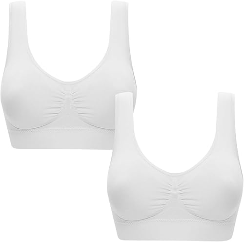 Pack of 2 Plus Size Sports Bra with No-Underwire Comfort Soft Ultra Thin Workout Jog Bras High Elasticity Bralette(White,Large)