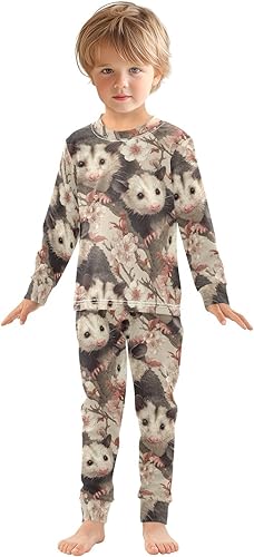 Pajama Sets Long Sleeve Adorable Possums Among Blossoms Soft Comfy Sleepwear 2 Piece PJS 3-8T(5T)