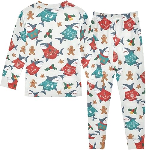 Pajama Sets Long Sleeve Christmas Shark with Sweaters Soft Comfy Sleepwear 2 Piece PJS 3-8T(6 Years)