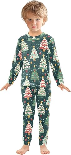 Pajama Sets Long Sleeve Christmas Trees with Stars Decorations Soft Comfy Sleepwear 2 Piece PJS 3-8T(8 Years)