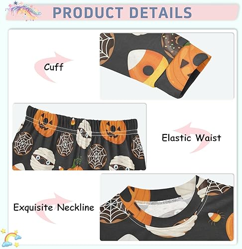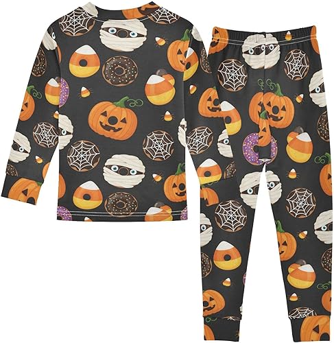 Pajama Sets Long Sleeve Halloween Donuts Pattern Soft Comfy Sleepwear 2 Piece PJS 3-8T(5T)