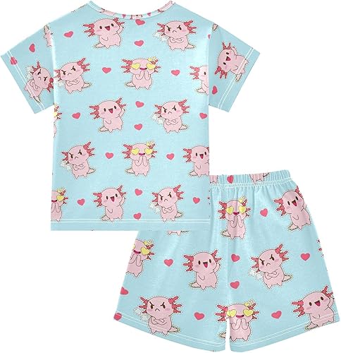 Pajama Short Sets Cute Axolotl Soft Cotton Summer Sleepwear 2 Piece PJS Size 5-14T(Cute Axolotl,10 Years)