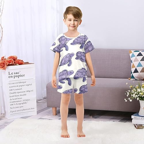 Pajama Short Sets Purple Sea Turtles Pattern Soft Cotton Summer Sleepwear 2 Piece PJS Size 5-14T(Purple Sea Turtles Pattern,10 Years)