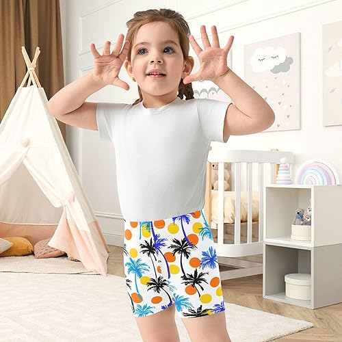 Palm Trees Blue Girls Bike Shorts Toddler Soft Cotton Active Biker Shorts(Multi-palm Trees Blue,10 Years)