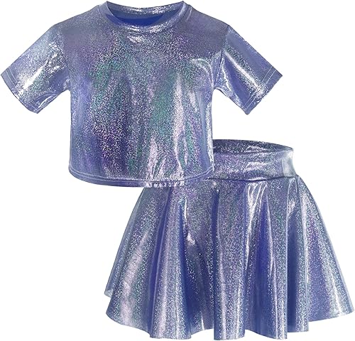 FASHIONABLE SHINY DESIGN: This costume set is made of shiny solid color metallic fabric, emitting a charming glow, adding highlights to dance performances and allowing girls to radiate confidence on stage.