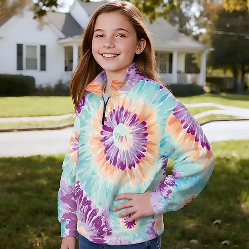 Pensura Girls' 1/4 Zipper Sweatshirts Oversized Quarter Zip Pullover Jacket Fall Spring Outfits Clothes(Tie Dye Print,5-6 Years)