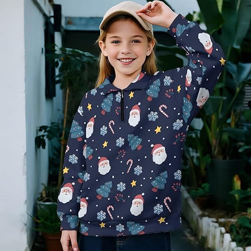 Pensura Girls Half Zip Sweatshirt Fall Trendy Long Sleeve Pullover Tops Oversized Pullover Trendy Clothes(Christmas Theme,11-12 Years)
