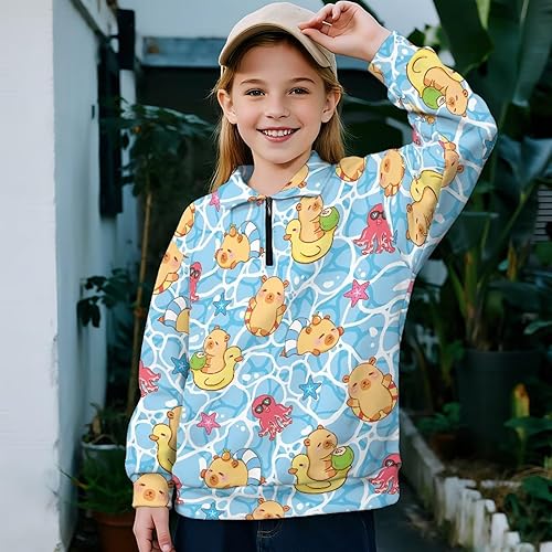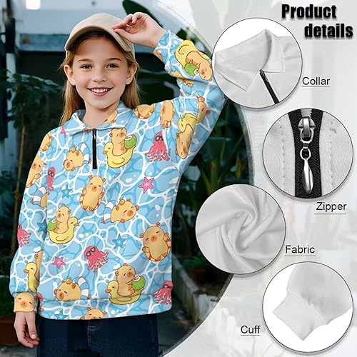 Premium Material: This girls' half-zip sweatshirt is crafted from high-quality polyester fabric that feels soft against the skin and offers breathability. Its lightweight design ensures unrestricted movement during play, while the durable material maintains its shape and texture even after repeated washing and daily wear, resisting deformation and pilling