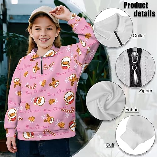 • Practical Features: Girls' sweatshirt features a half-zip collar design, the smooth-gliding zipper allows children to dress independently. The adjustable neckline adapts to temperature changes, making it perfect for spring/fall cool weather or layering in winter. The dropped shoulders and relaxed fit create a casual, effortless style while accommodating various body types. This design provides ample freedom of movement for running, jumping, playing, or everyday activities