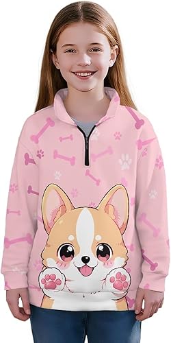 Practical Features: Girls' sweatshirt features a half-zip collar design, the smooth-gliding zipper allows children to dress independently. The adjustable neckline adapts to temperature changes, making it perfect for spring/fall cool weather or layering in winter. The dropped shoulders and relaxed fit create a casual, effortless style while accommodating various body types. This design provides ample freedom of movement for running, jumping, playing, or everyday activities