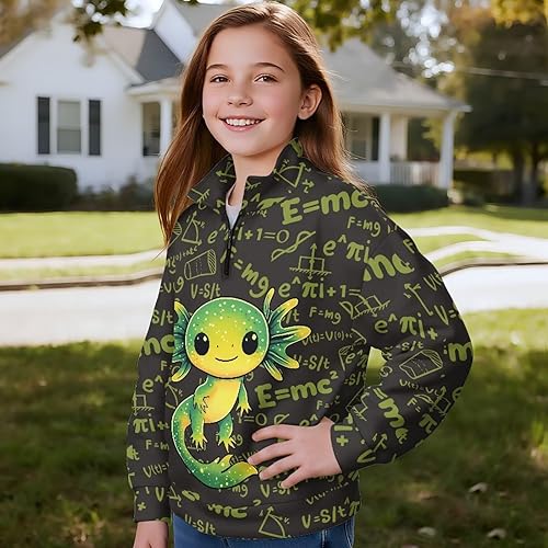 Premium Material: This girls' half-zip sweatshirt is crafted from high-quality polyester fabric that feels soft against the skin and offers breathability. Its lightweight design ensures unrestricted movement during play, while the durable material maintains its shape and texture even after repeated washing and daily wear, resisting deformation and pilling