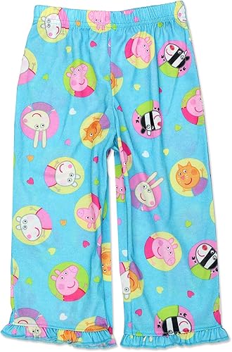 • COMFORTABLE MATERIALS - These pajamas are made from high-quality 100% polyester fabric that is flame resistant for your child's safety. They are lightweight and soft. This cute Peppa pj set contains cap-style ruffle sleeves, ruffle cuffs on the pants for added style, an elastic waistband, and sublimated graphics.