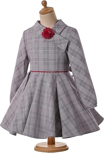 Double layer collar, red bow in the front. Elastic sleeve. Ruffle sleeve with red bow.