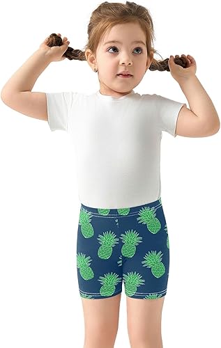 Pineapple Dark Blue Girls Bike Shorts Toddler Soft Cotton Under Dress Dance Shorts(Multi-pineapple Dark Blue,10 Years)