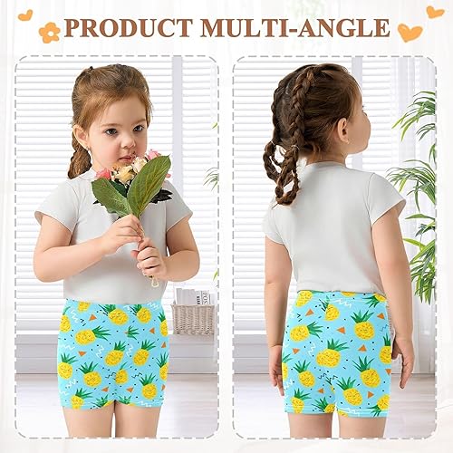 Pineapple Fruits Blue Girls Bike Shorts Toddler Soft Cotton Under Dress Cartwheel Shorts(Multi-pineapple Fruits Blue,4T)
