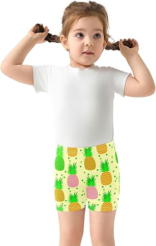 Pineapple Green Dots Girls Bike Shorts Toddler Soft Cotton Active Biker Shorts(Multi-pineapple Green Dots,4T)