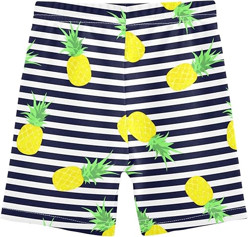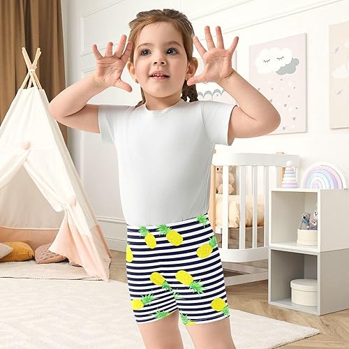 Pineapple Stripe Black Girls Bike Shorts Toddler Soft Cotton Active Under Dress Shorts(Multi-pineapple Stripe Black,10 Years)