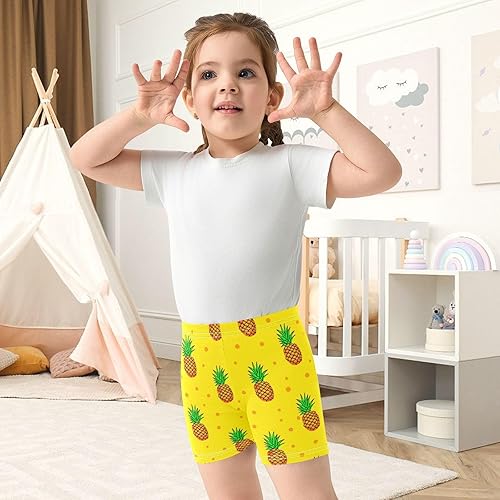Pineapple Yellow Girls Bike Shorts Toddler Soft Cotton Cartwheel Under Dress Dance Shorts(Multi-pineapple Yellow,5T)