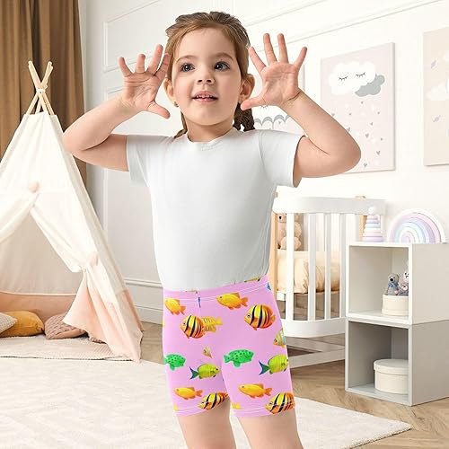 Pink Fishes Girls Bike Shorts Toddler Soft Cotton Active Under Dress Shorts(Multi-pink Fishes,6 Years)