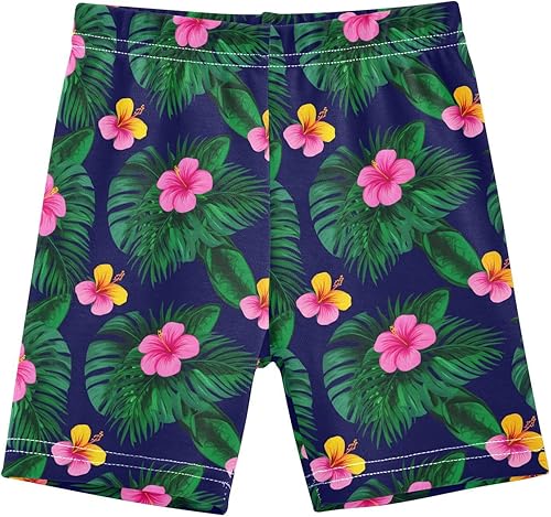 Pink Flowers Leaf Girls Bike Shorts Toddler Soft Cotton Active Under Dress Shorts(Multi-pink Flowers Leaf,8 Years)