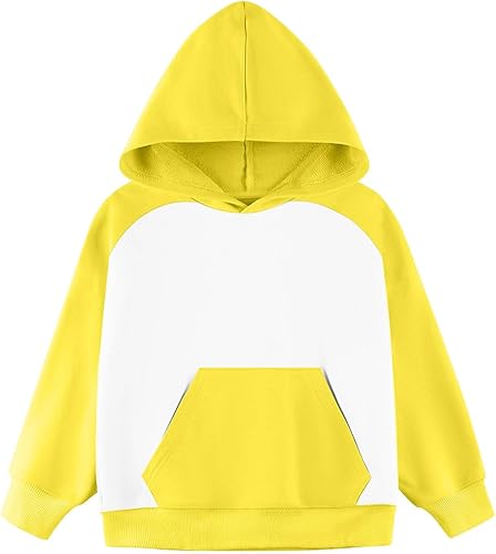 Pink Hoodie for Girls Kids Cute Color Block Trendy Sweatshirts Teen Girls Boys Clothes Y2k Tops with Pockets 2025(Yellow,7-8 Years)