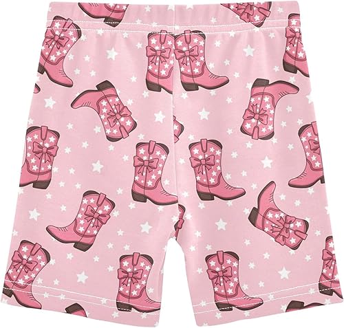Pink Shose Western Cowboy Cowgirl Girls Bike Shorts Toddler Soft Cotton Under Dress Dance Shorts(Multi-pink Shose Western Cowboy Cowgirl,10 Years)