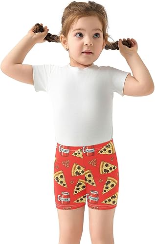 Pizza Red Girls Bike Shorts Toddler Soft Cotton Active Biker Shorts(Multi-pizza Red,10 Years)