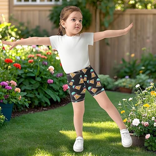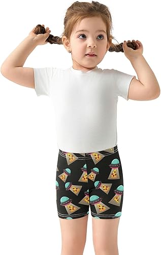 Pizza UFO Black Girls Bike Shorts Toddler Soft Cotton Active Under Dress Shorts(Multi-pizza Ufo Black,10 Years)