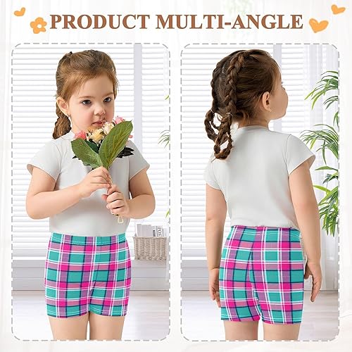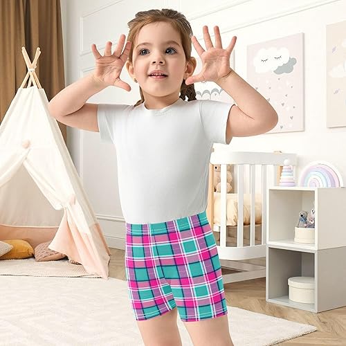 Plaid Fabric Teal Girls Bike Shorts Toddler Dance Athletic Shorts Under Dress Clothes for Summer,4T(8 Years)