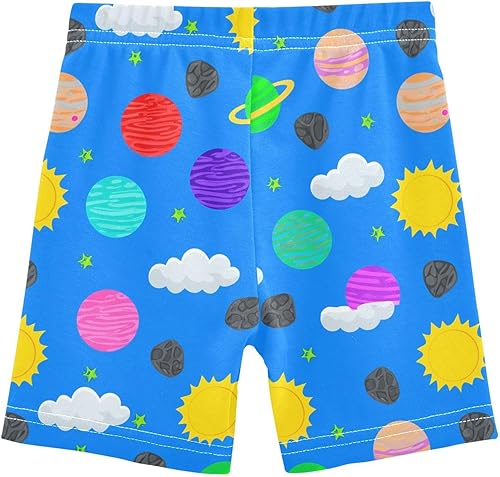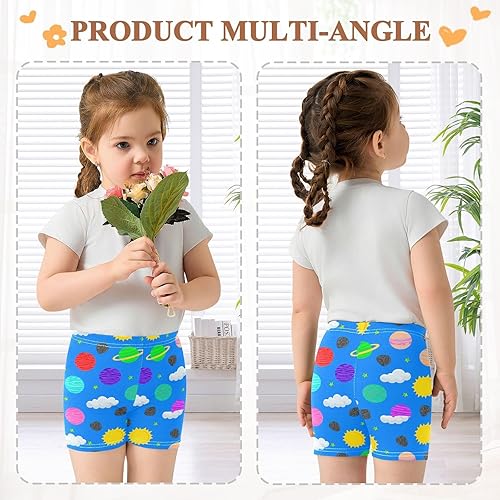 Planet Star Blue Girls Bike Shorts Toddler Soft Cotton Active Under Dress Shorts(Multi-planet Star Blue,10 Years)