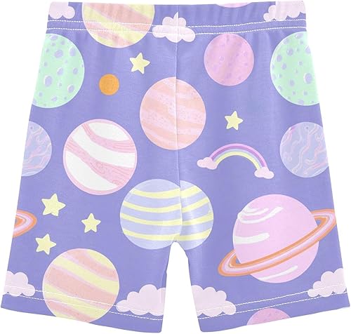Planet Star Purple Girls Bike Shorts Toddler Soft Cotton Active Biker Shorts(Multi-planet Star Purple,10 Years)