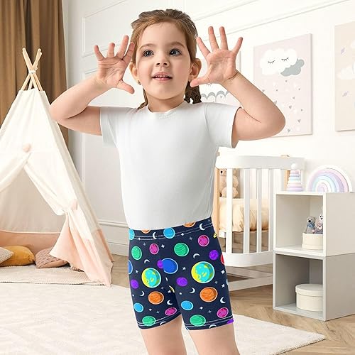 Planets Stars Blue Girls Bike Shorts Toddler Soft Cotton Under Dress Dance Shorts(Multi-planets Stars Blue,4T)