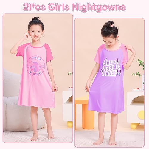 Cute Design -- A 2-piece girls nightgowns with different pattern combinations to meet the needs for various colors and replacements. The patterns are vibrantly and lifelike and are popular with little girls, making the princess dress both comfortable and beautiful.