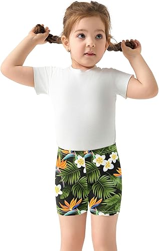 Plumerias Palm Leaves Black Girls Bike Shorts Toddler Dance Athletic Shorts Under Dress Clothes for Dresses,4T(5T)
