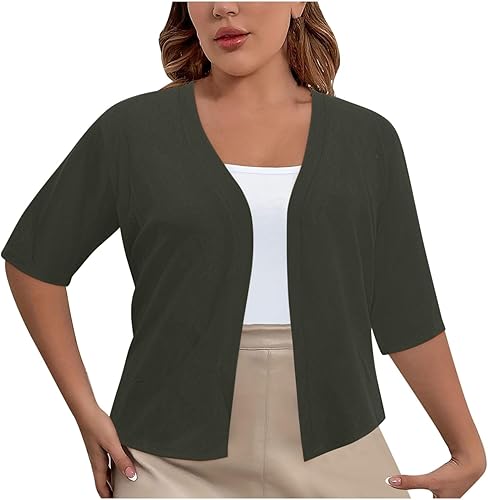 brown sweater Plus Size Open Front Cardigan for Loose Business Casual Bolero Shrugs Short Sleeve Cropped Tops tops for teen girls