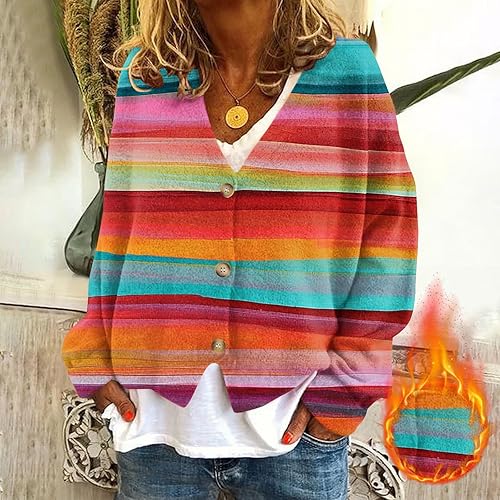 Plush Cardigan for Women Fashion Button V-Neck Flannel Tops Cute Colorful Open Front Long Sleeve Shirts 2025 Fashion(Multicolor-22,Small)