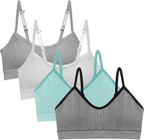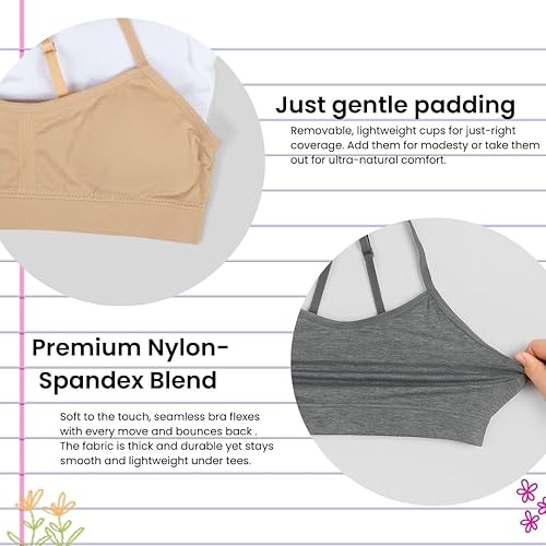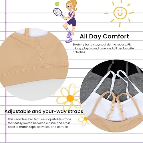 Adjustable Fit: Features easy-to-use, adjustable straps for style versatility; perfect as a cami bra, racerback style, or girls sports bras; ensures a snug yet comfortable fit for girls first bra