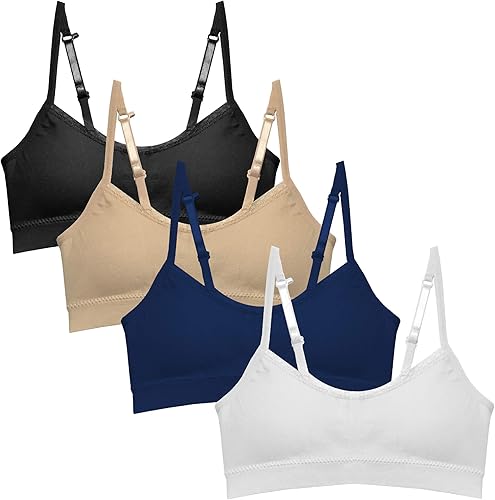 Adjustable Fit: Features easy-to-use, adjustable straps for style versatility; perfect as a cami bra, racerback style, or girls sports bras; ensures a snug yet comfortable fit for girls first bra