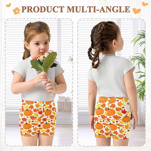 Pumpkin Fall Leaves Orange Girls Bike Shorts Toddler Soft Cotton Under Dress Cartwheel Shorts(Multi-pumpkin Fall Leaves Orange,10 Years)