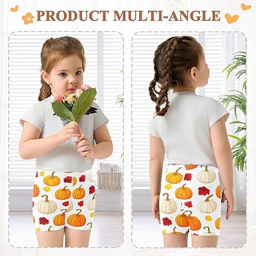 Pumpkin Maple Leaf White Girls Bike Shorts Toddler Soft Cotton Under Dress Dance Shorts(Multi-pumpkin Maple Leaf White,6 Years)