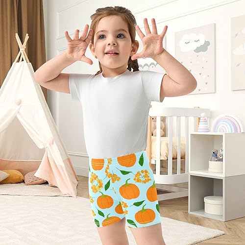 Pumpkin Orange Fall Girls Bike Shorts Toddler Soft Cotton Under Dress Dance Shorts(Multi-pumpkin Orange Fall,10 Years)